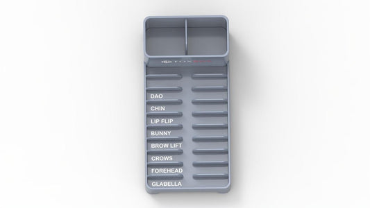 Organizes neurotoxin syringes methodically to increase injector efficiency, save valuable office time and reduce injection errors.
